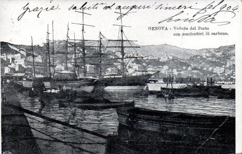 VEDUTA DEL PORTO CON SCARICATORI DI CARBONE.