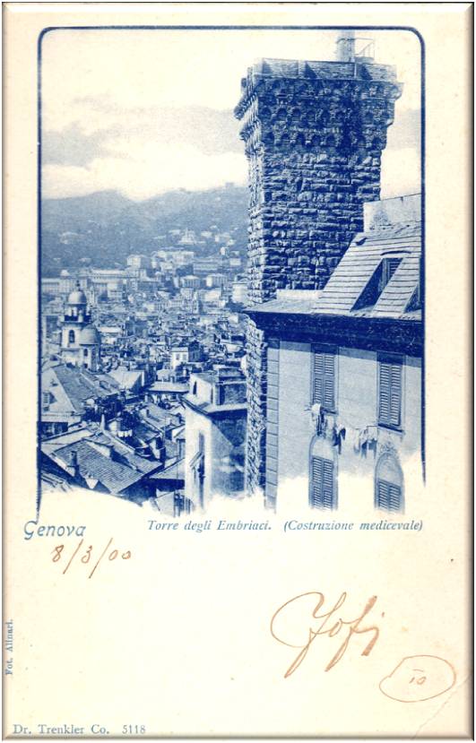 Cartolina viaggiata in data 6 marzo 1900 da Genova a Roma.
