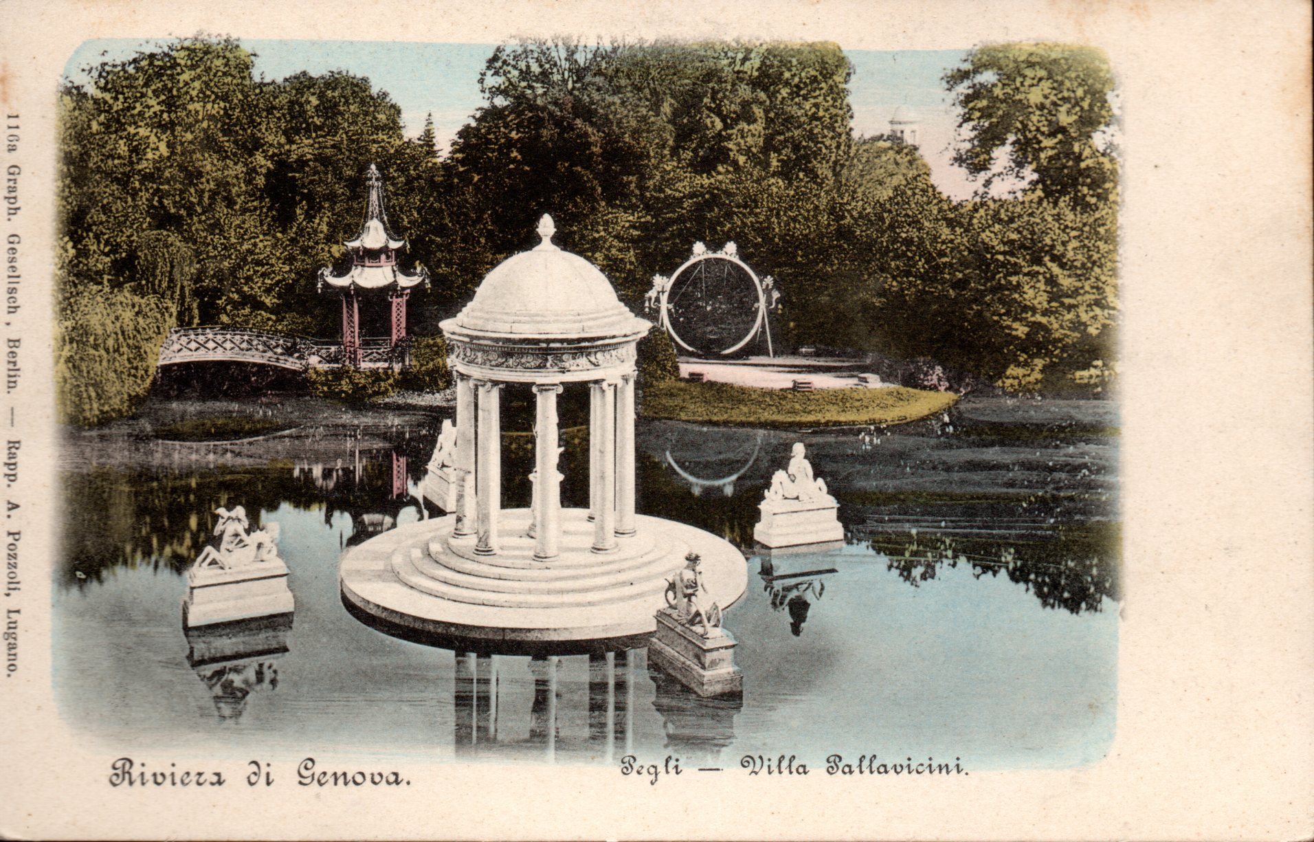 Cartolina viaggiata in data 24 novembre 1902, riproducente una parte dell'interno di Villa Pallavicini Ediz. Graph. Geselisch, Berlin-Rapp. A.Pozzoli, Lugano Alb.2 Sc.4 P.5