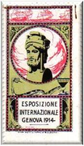 Nel biglietto si pubblicizza l'aver partecipato alla Prima Mostra Coloniale Italiana tenutasi a Genova nel 1914