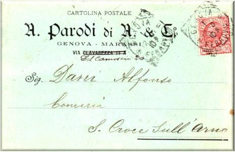 Spedita da Genova 15 novembre 1901 per Borgo S.Donino