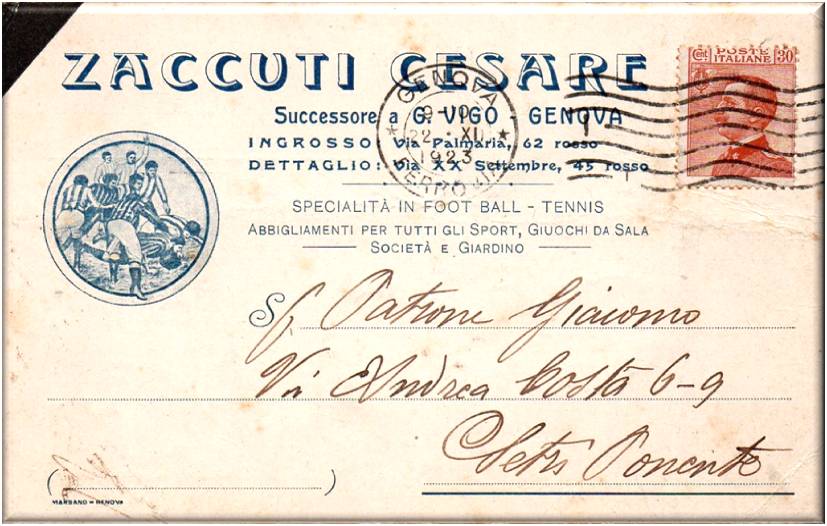 Cartolina viaggiata in data 22 novembre 1923 e stampata dalla tipografia Marsano di Genova