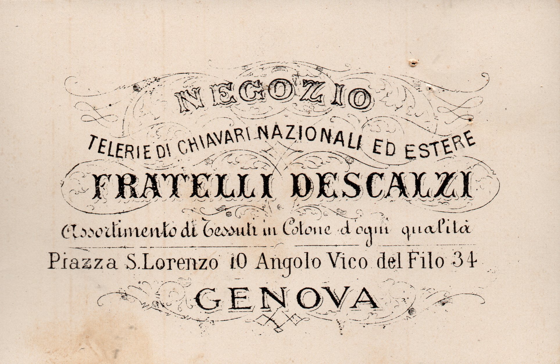 TESSUTI DEA Genova, con negozi in via XX Settembre, 81-83 e in piazza delle Vigne, 16 r.
