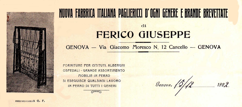 Fabbrica Italiana Pagliericci d'ogni genere e Brande brevettate.
