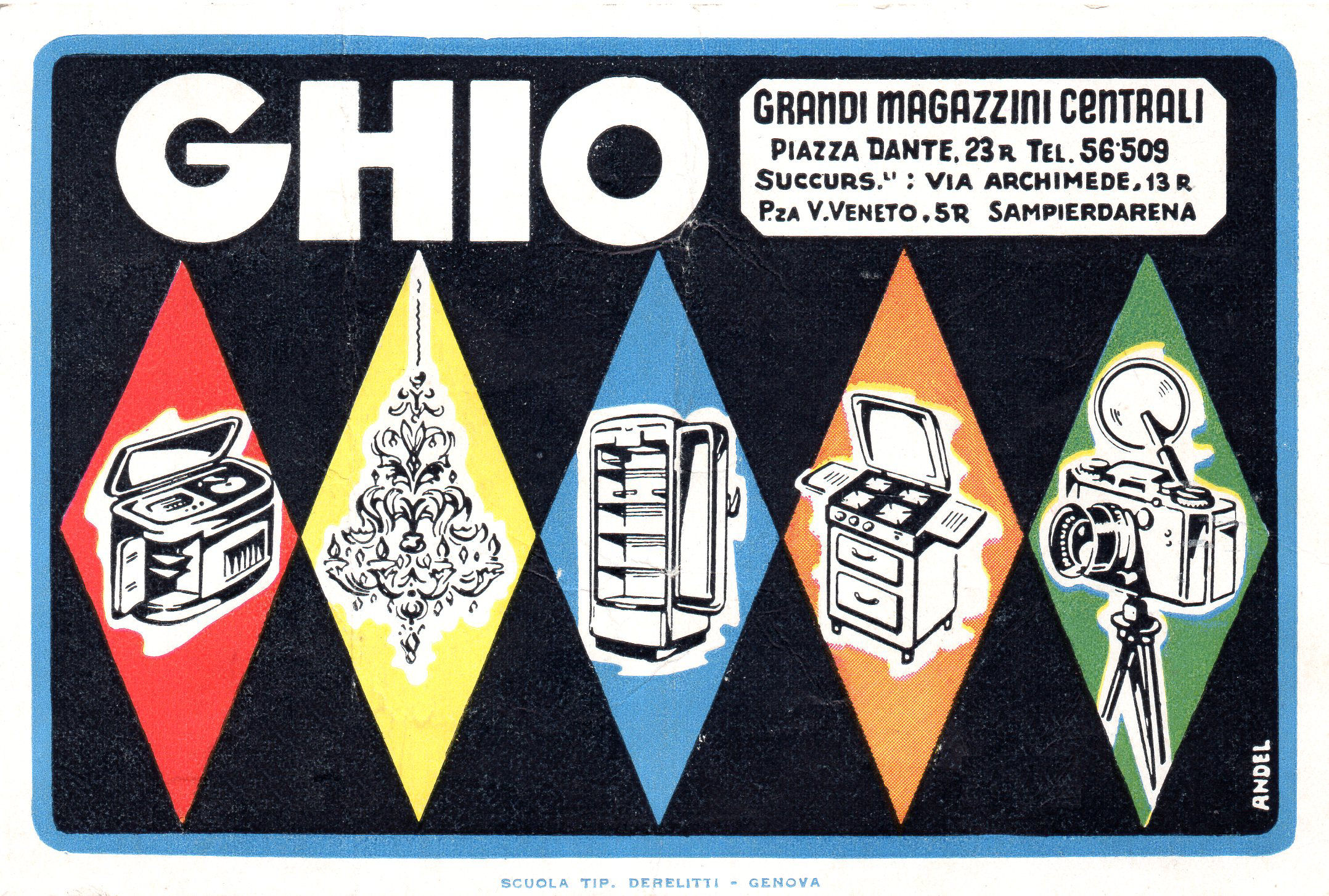 Ditta specializzata nella vendita di elettrodomestici, radio, macchine fotografiche, lampadari ed altri oggetti per la casa.