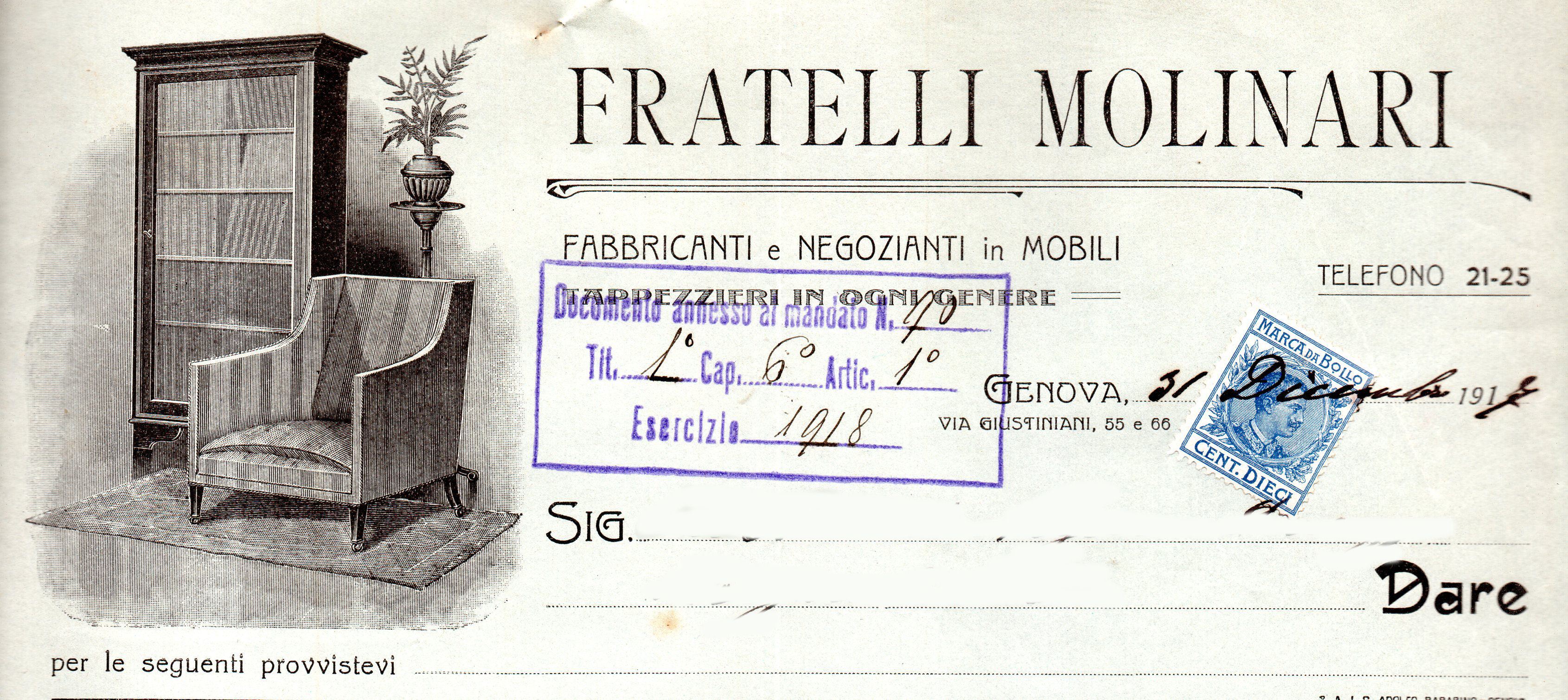 Fattura della Ditta Fratelli Molinari