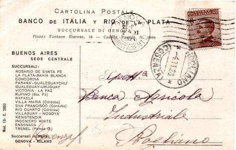 Cartolina commerciale spedita da Genova il 2 novembre 1926 per Rogliano Cosenza.