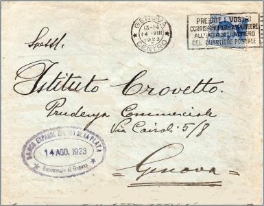 Lettera commerciale spedita da Genova il 14 agosto 1923 per Genova.