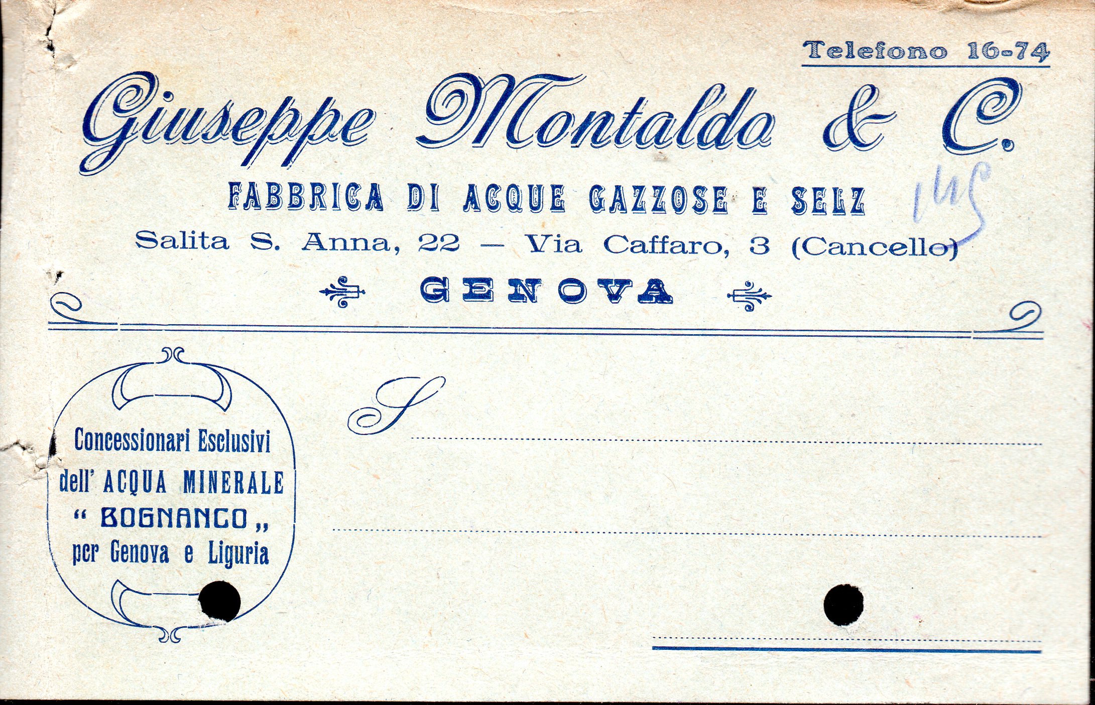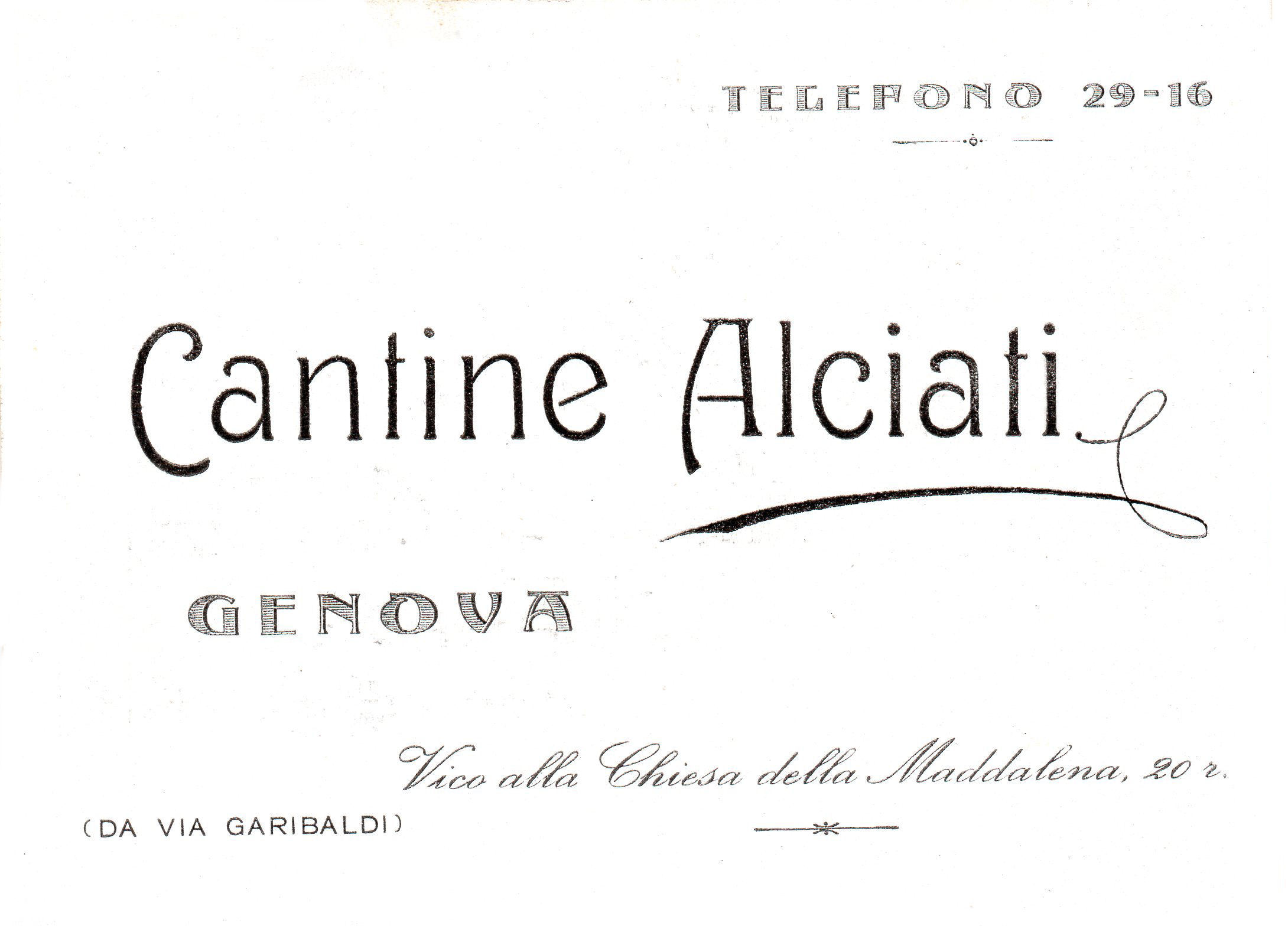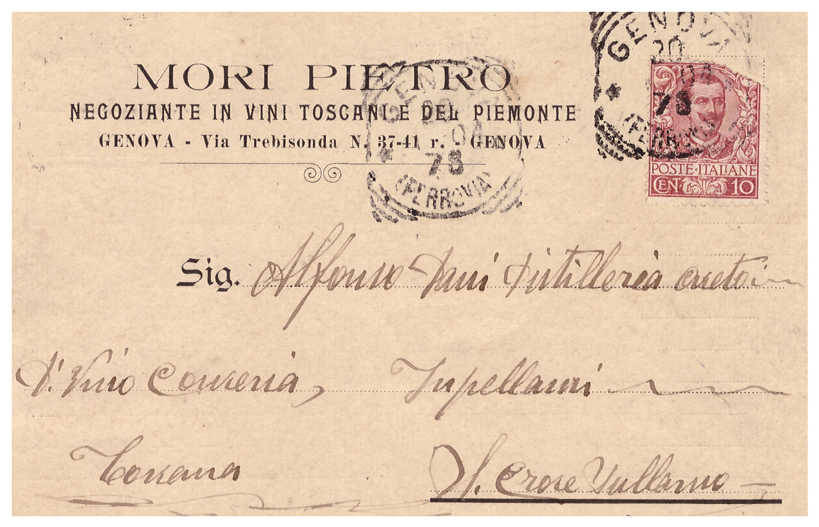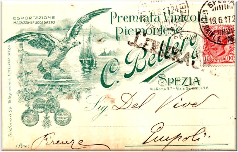 Negoziante in vini toscani e del piemonte, con sede in Genova via Trebisonda n° 37-41 r.