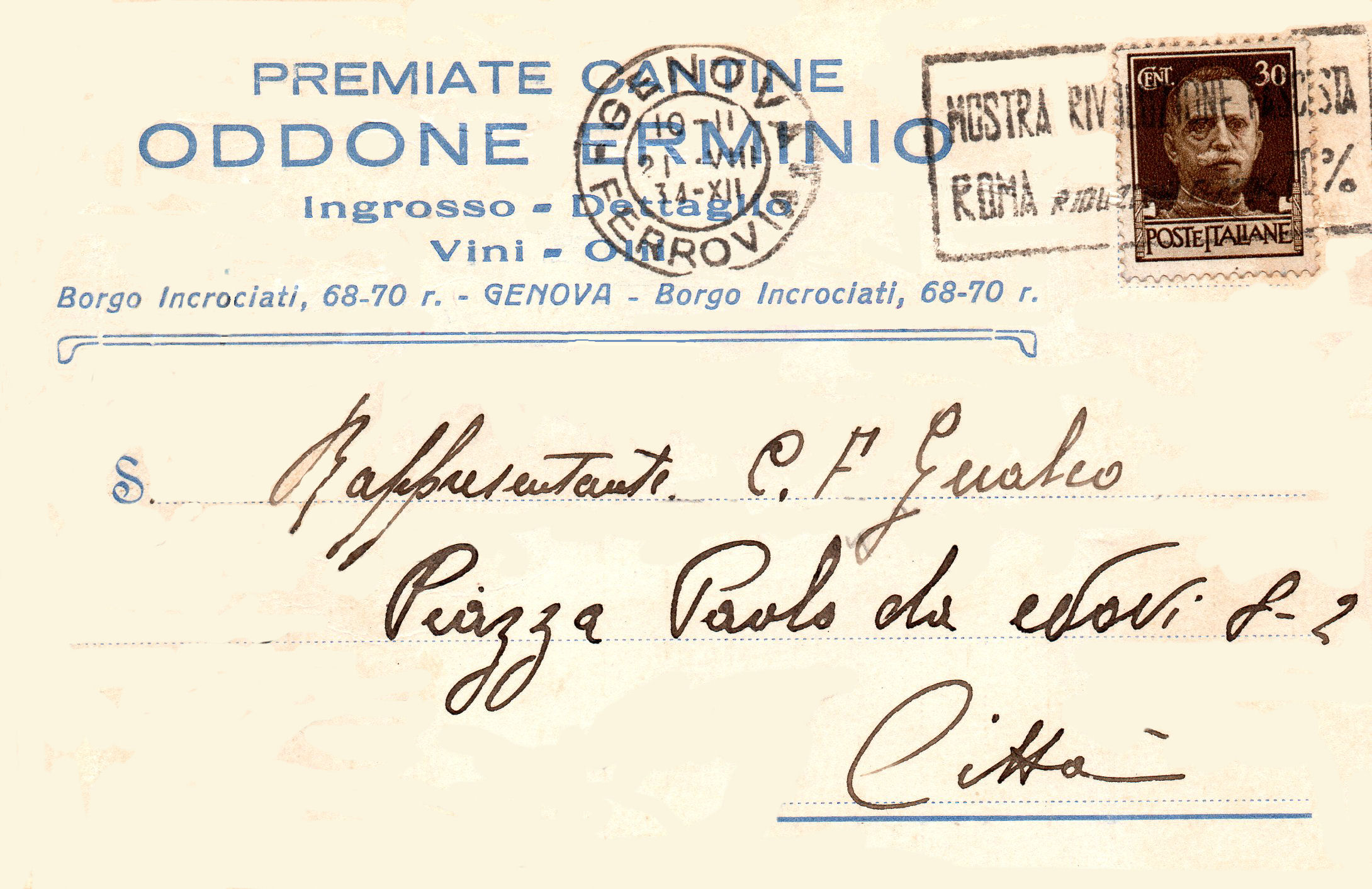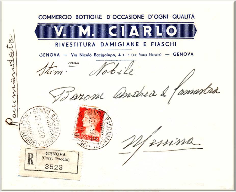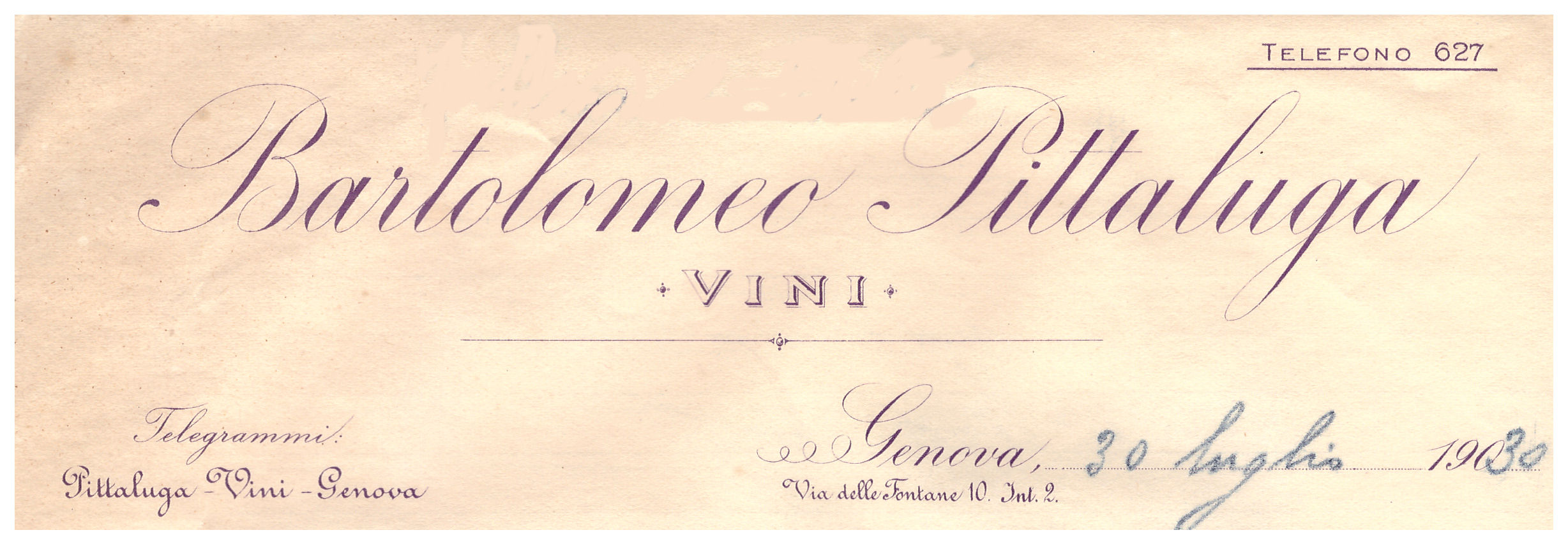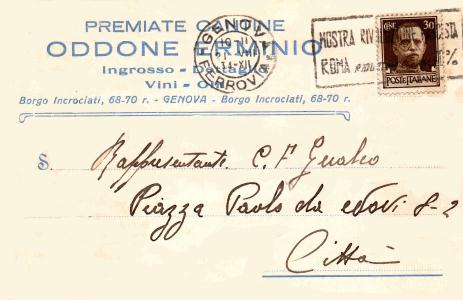 Commerciante in vini, sito nel 1930 in Genova via delle Fontane 10 int.2.