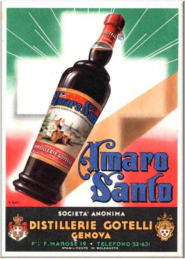Nel cartoncino viene pubblicizzato l'Amaro Santo