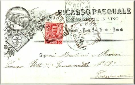 Cartolina pubblicitaria della ditta Picasso Pasquale negoziante in vino.