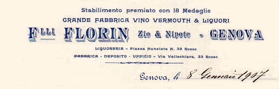 Pubblcità tratta da una fattura emessa l'8 gennaio 1907 dalla ditta Flli. Florian zio & nipote.