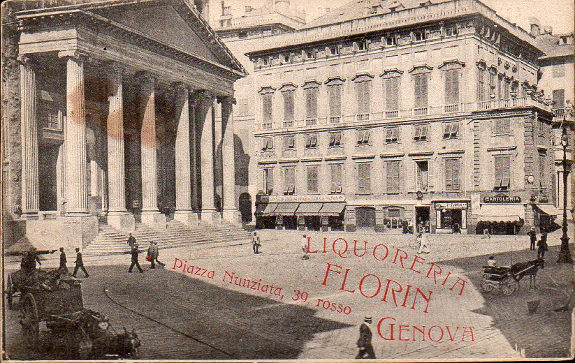 La cartolina publiccizza l'attività del signor Stamm, che gestiva una Birraria, ( come è scritto nelle vecchie guide genovesi) il locale si trovava in via Carlo Alberto al civ. n°275.
