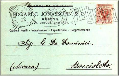 Dal testo della cartolina si capisce che la ditta Jonassohn trattava diversi prodotti tra cui anche il burro, lo scrivente alla fine dello scritto rammenta al suo fornitore di non dimenticare le eventuali occorrenze di carbone.