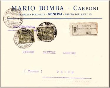 Lettera raccomandata da Genova a Penne, in data 21 settembre 1922.