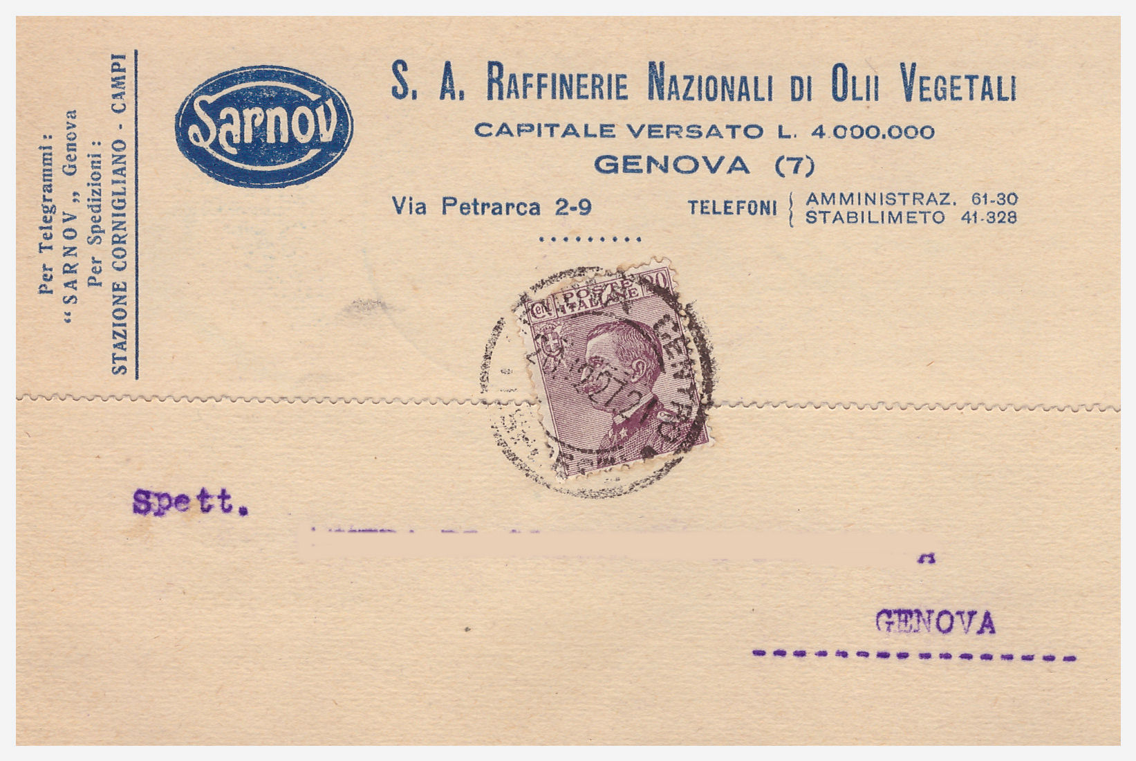 La ditta Mario Ravano aveva gli uffici in via F.Ferruccio 9 a Genova.