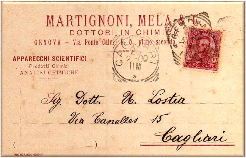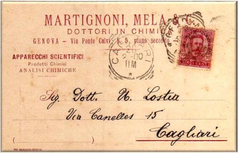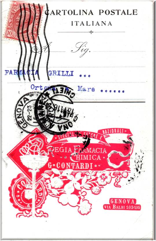 Cartolina commerciale della Regia Farmacia Chimica G.CONTARDI