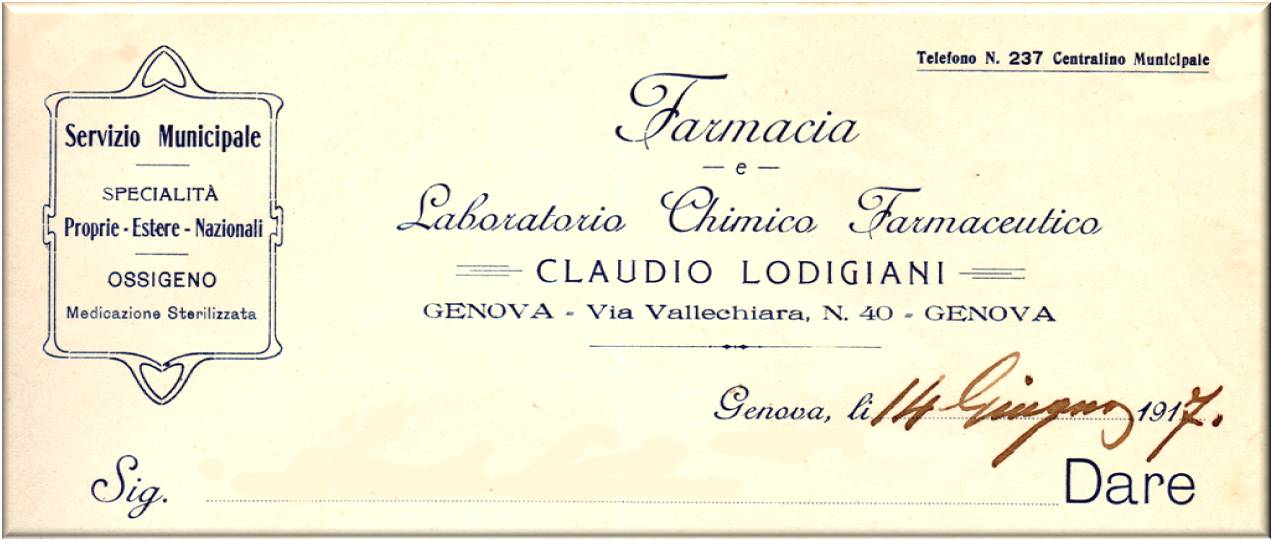 Farmacia Oliva, situata nel 1925 in piazza Commenda 13 r.