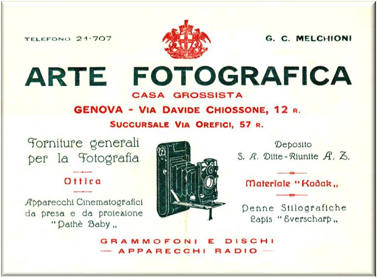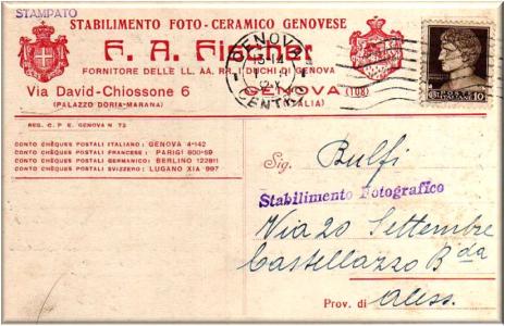 Da una guida del 1913 si legge: Fischer F. A. (Stabilimento foto-ceramico genovese), Fotografo-smalti via Cairoli, 11