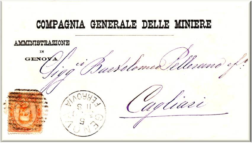 Lettera dell'Amministrazione in Genova spedita 5 marzo 1880 e spedita al signor Bartolomeo Pellerano di Cagliari.