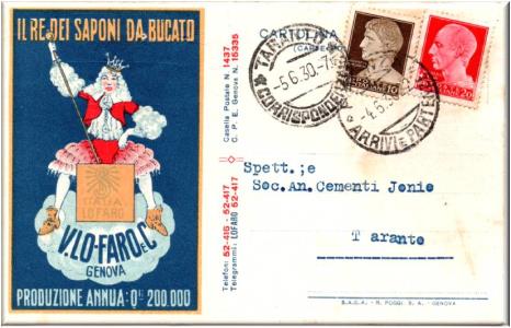 Spedita in data 4 giugno 1930 da Piacenza per Taranto.
