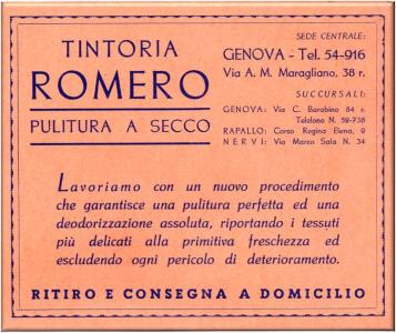 Cartoncino pubblicitario della Tintoria ROMERO