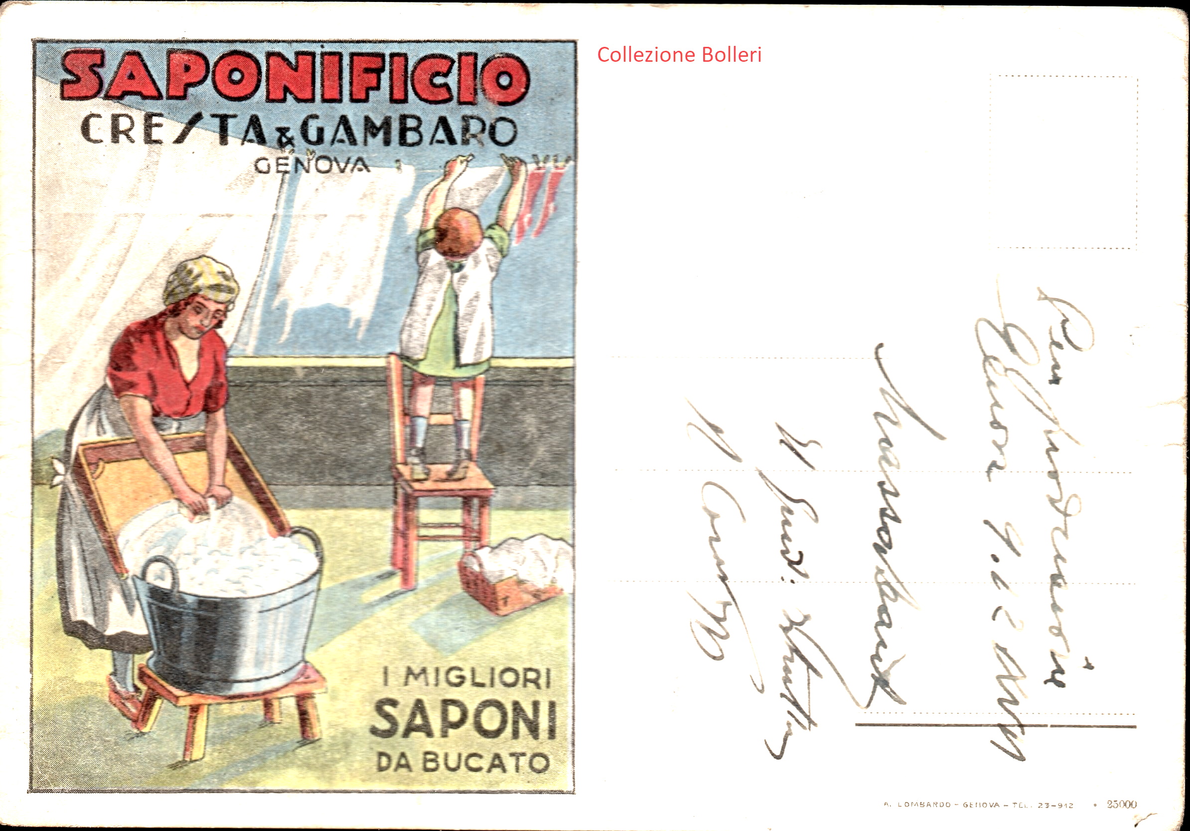 Rilasciata dal Signor Giovanni Olcese, che era il rappresentante esclusivo per tutta la Riviera di Levante, e aveva gli uffici a Recco in via Roma,10. la cartolina porta la sua firma.