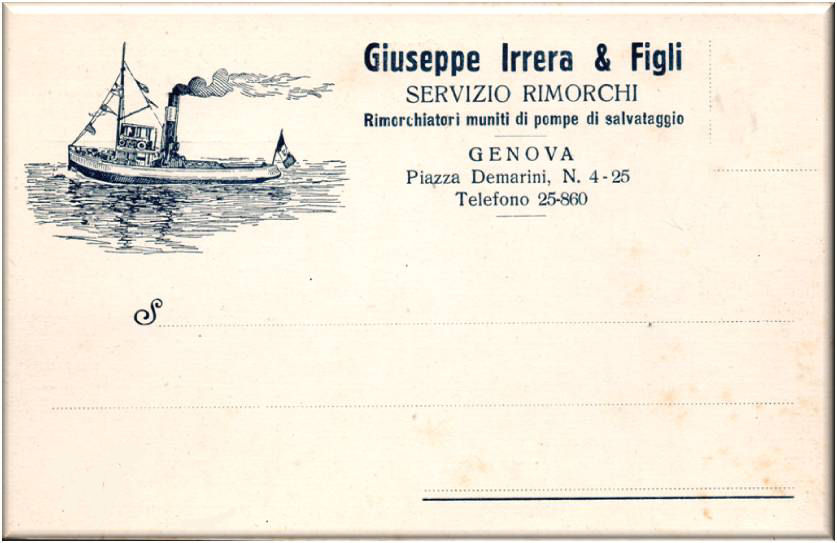 Cartolina nuova pubblicitaria della ditta Giuseppe Irrera & Figli di Genova