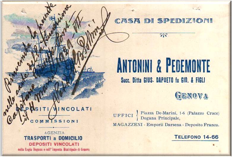 Cartolina pubblicitaria della ditta Fratelli Weiss, spedizionieri in Genova,