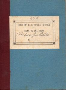 Questo libretto riporta il nome del Socio Persico Gio Batta nato il 12 luglio 1872 di professione Calderaio, ammesso nella Società il 1° Dicembre 1898, gli venne affidato il numero di matricola n°22.
