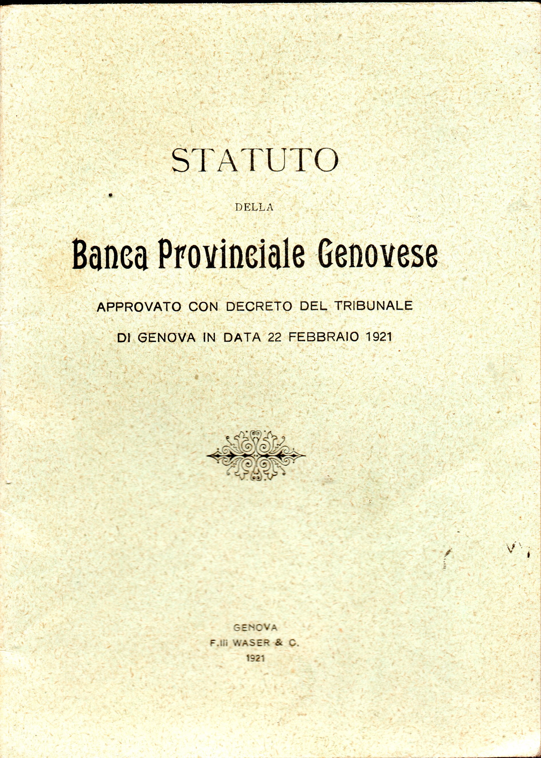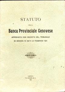 Libretto Statuto della BANCA PROVINCIALE GENOVESE