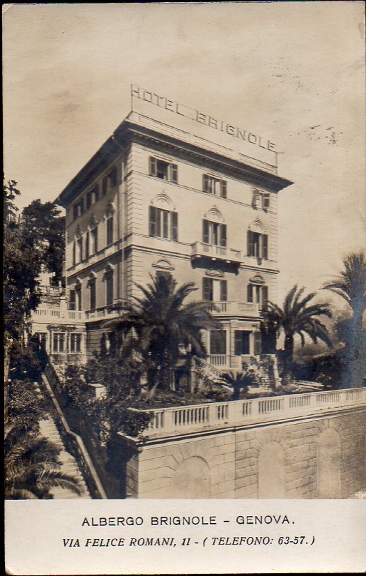Cartolina pubblicitaria dell'Hotel Albergo Brignole, situato in via F. Romani, 11 Genova.