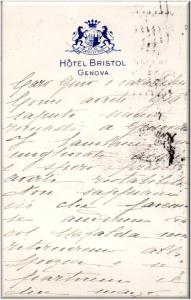 Cartolina pubblicitaria dell'Hotel Bristol di Genova.