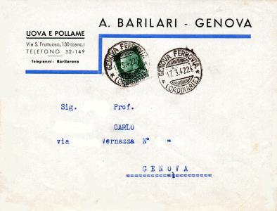 Busta commerciale della ditta Barilari A., specializzata in uova e pollame via S. Fruttuoso, 130 (canc.) conservati.