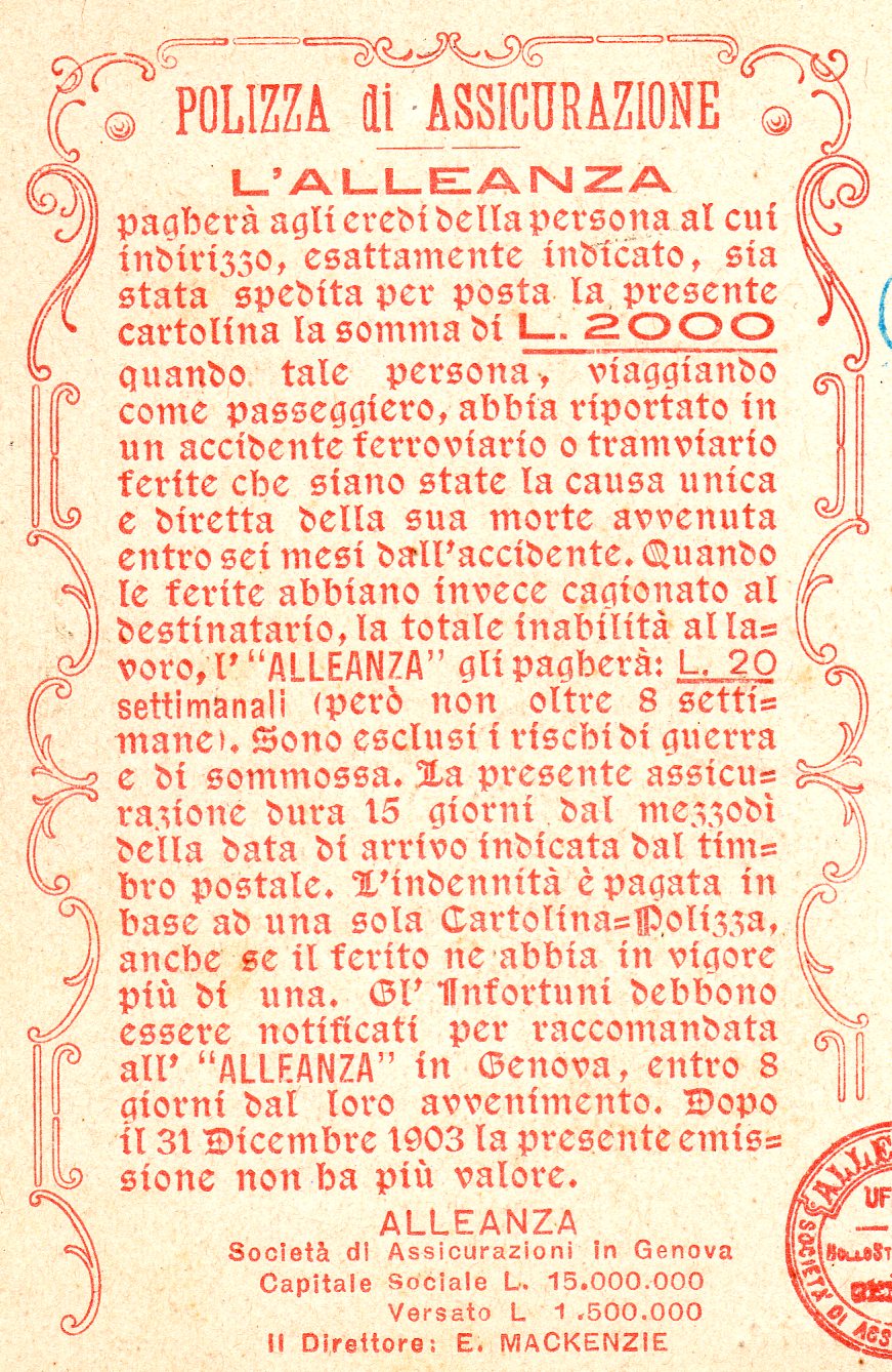 Cartolina polizza, interessante la sottoscrizione attraverso la spedizione della stessa.