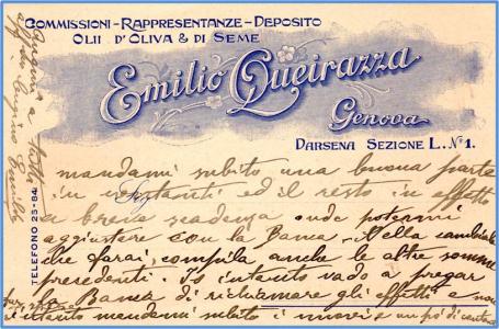 Cartolina pubblicitaria recapitata a mano oppure in una busta della ditta Emilio Queirazza