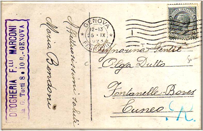 Cartolina vg. in data 25 settembre 1923
