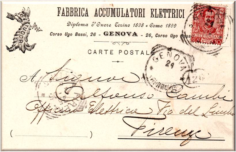 Nella cartolina vi è il marchio TUDOR, che si riferisce alle batterie per auto e per mezzi industriali.
