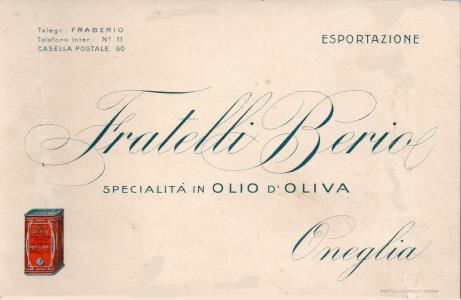 Biglietto da visita della ditta Fratelli Berio specialità in OLIO d'OLIVA