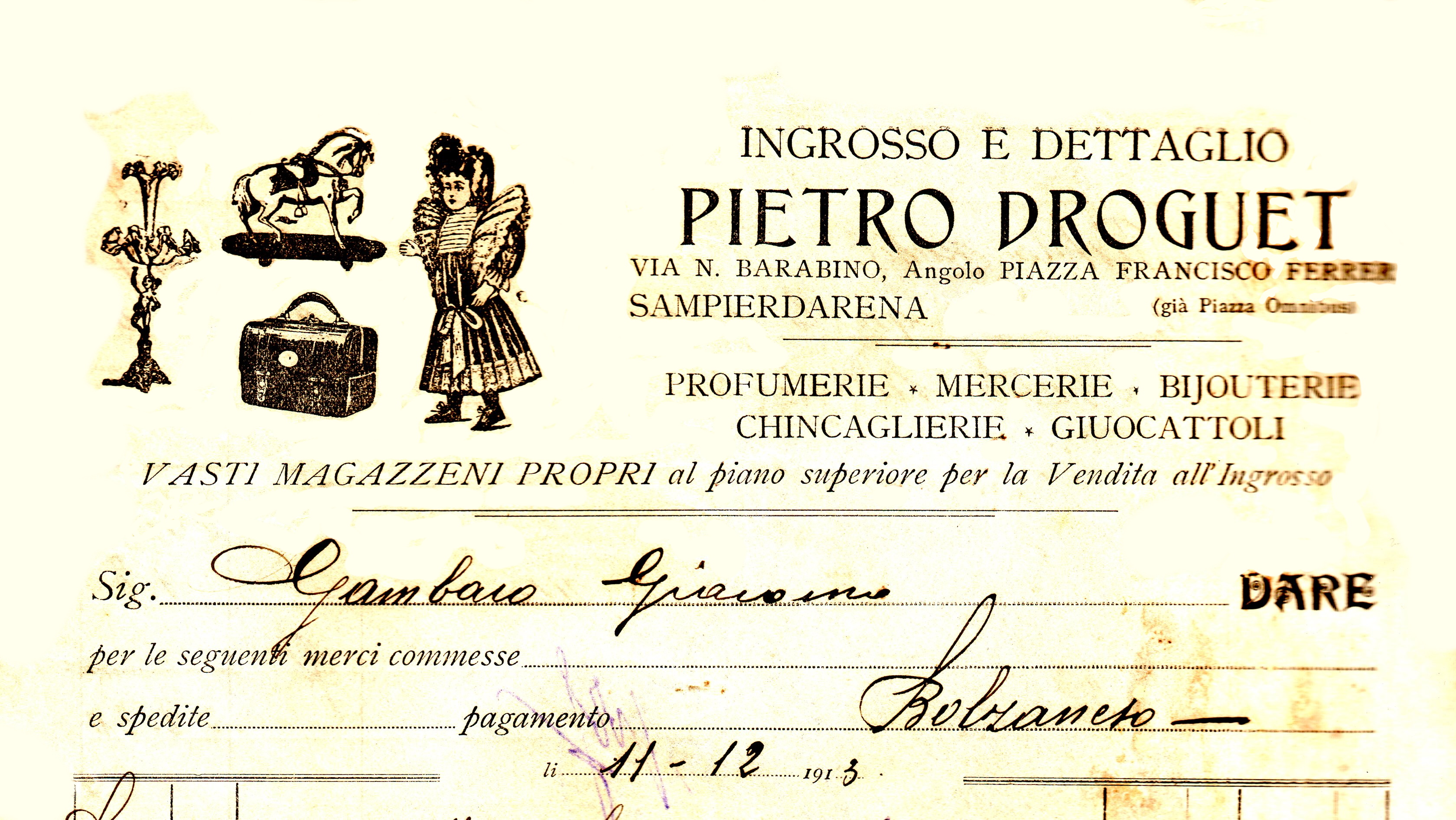 Fattura emessa in data 11 dicembre 1913