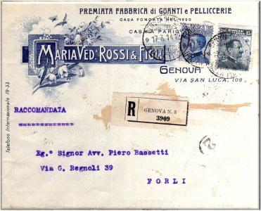Lettera pubblicitaria, spedita da Genova a Forli in data 17 marzo 1914