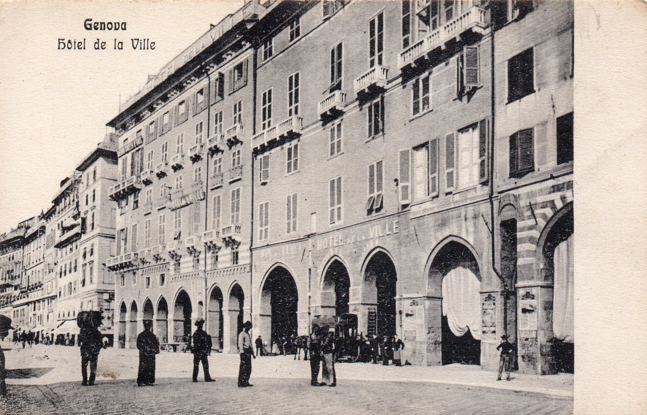 Cartolina fotografica di via Carlo Alberto, in primo piano a destra l'Hotel de la Ville.
