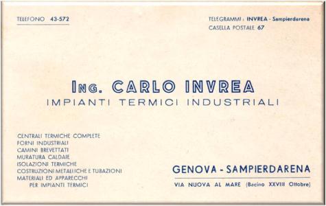 Biglietto da visita pubblicitario dell'Ing. Carlo Invrea