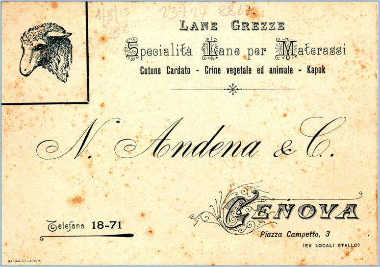 ETICHETTE: N.ANDENA & C.  LANE  COTONE  CRINE  KAPOK  PIAZZA CAMPETTO