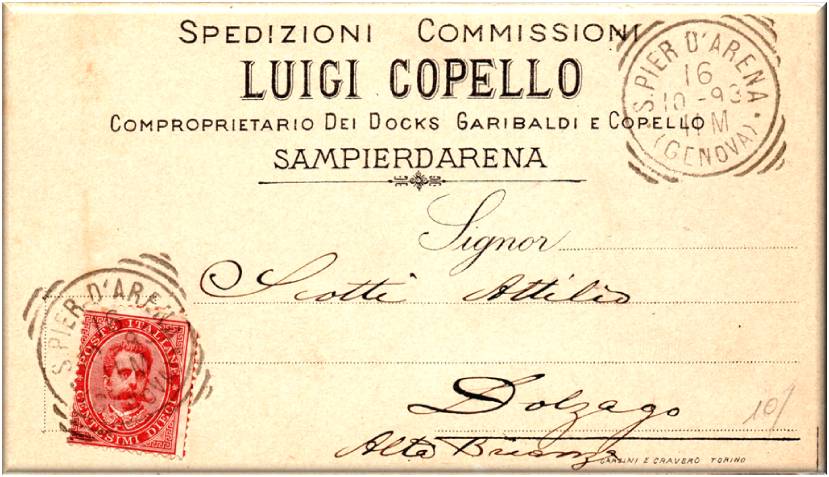Cartolina vg. in data 16 ottobre 1893 da Genova S.Pier D'Arena per Dolzago