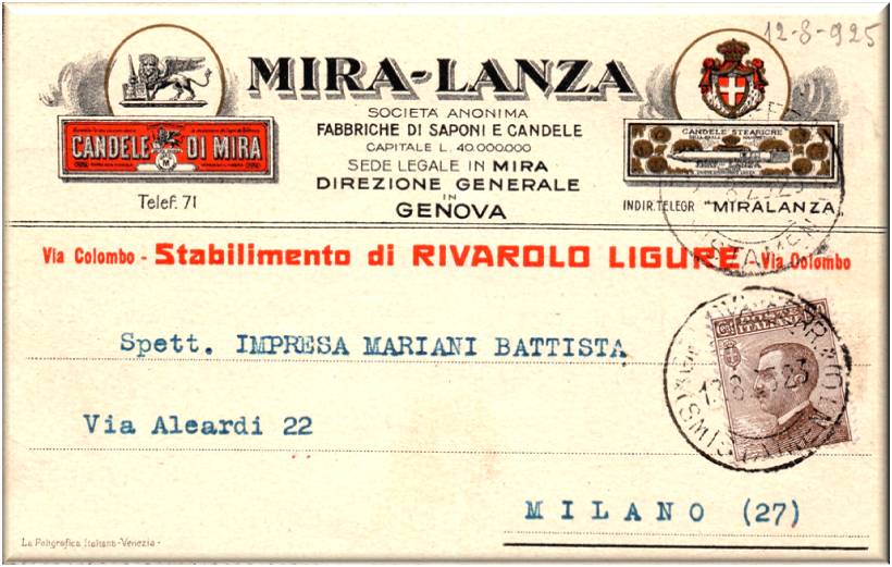MIRA-LANZA Società anonima fabbrica di Saponi e Candele