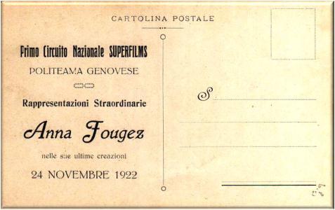 Pubblicità per la rappresentazione di Anna Fougez nelle sue ultime creazioni 24 novembre 1922