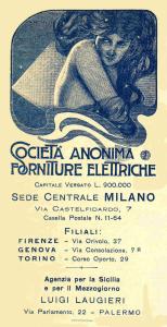 Tassello pubblicitario inserito nella fattura della Società Anonima Forniture Elettriche.