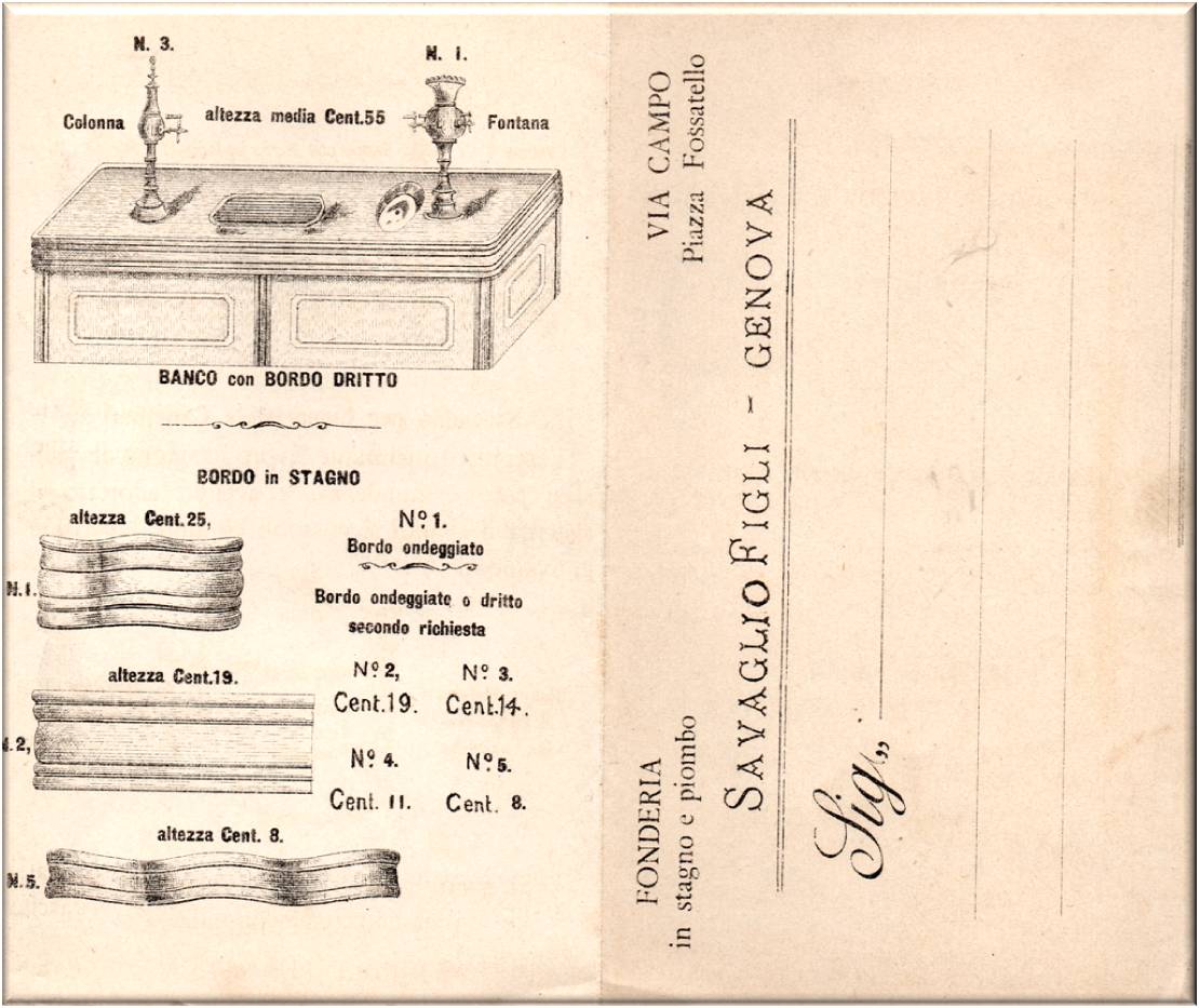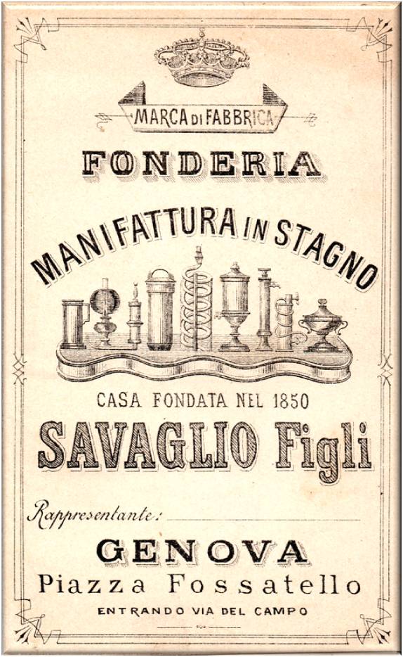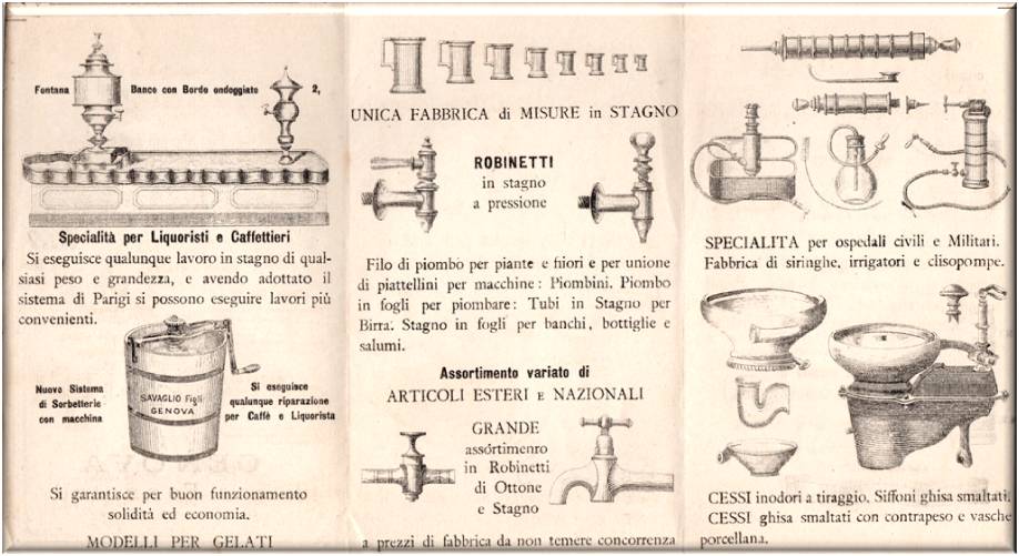 Cartolina opuscolo pubblicitaria della ditta SAVAGLIO Figli, fondata nel 1850.